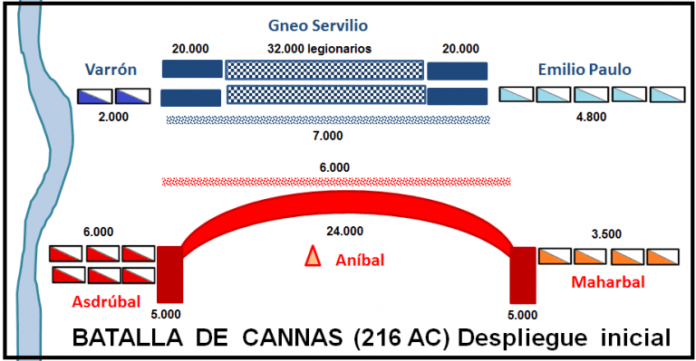 Una batalla perfecta pero no decisiva. Roma estaba contra las cuerdas tras las grandes derrotas de Tisino, Trebia y lago Trasimeno. Ahora dos cónsules Cayo Terencio Varrón y Lucio Emilio Paulo quieren parar a Aníbal en Cannas.