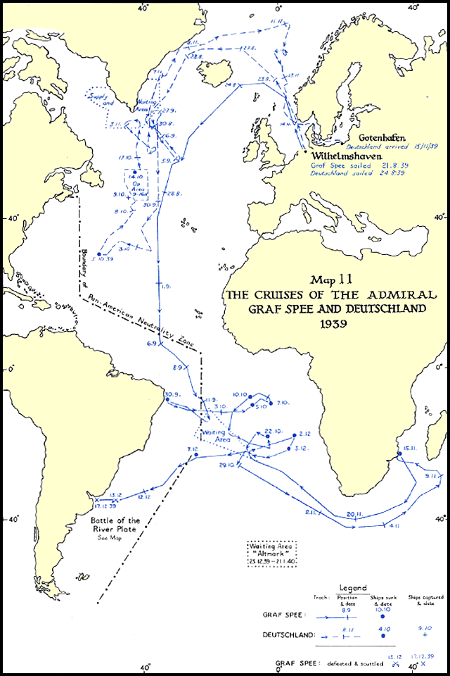 El Graf Spee participó en varias misiones durante la Segunda Guerra Mundial, incluyendo la Batalla del Río de la Plata, donde se enfrentó a la Marina británica y dañó varios barcos enemigos antes de verse obligado a retirarse. Tras la batalla, el Graf Spee buscó refugio en Montevideo, Uruguay, donde fue rodeado por buques británicos. Con pocas opciones de escape, el capitán del Graf Spee decidió hundir su propio barco para evitar que fuera capturado.