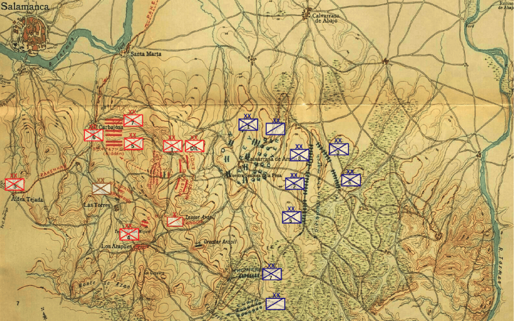En el contexto de la Guerra Peninsular, Wellington buscaba expulsar a las fuerzas francesas de la Península Ibérica. La batalla comenzó cuando las tropas aliadas ocuparon posiciones defensivas en las colinas de los Arapiles. Wellington, conocido por su habilidad táctica, utilizó el terreno a su favor.
